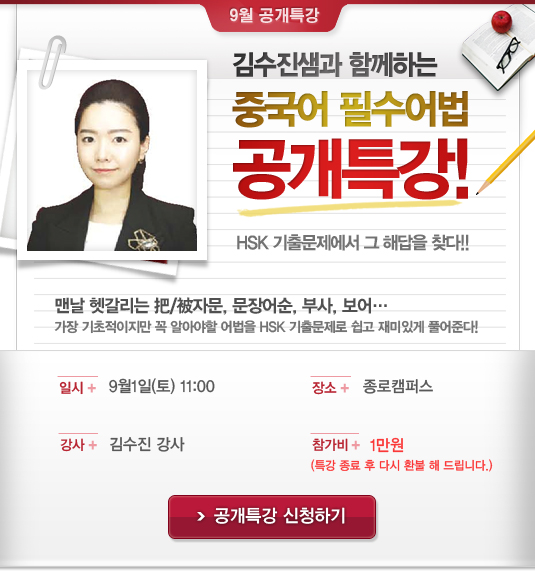 9월 공개특강-김수진쌤의 중국어 필수어법 특강!