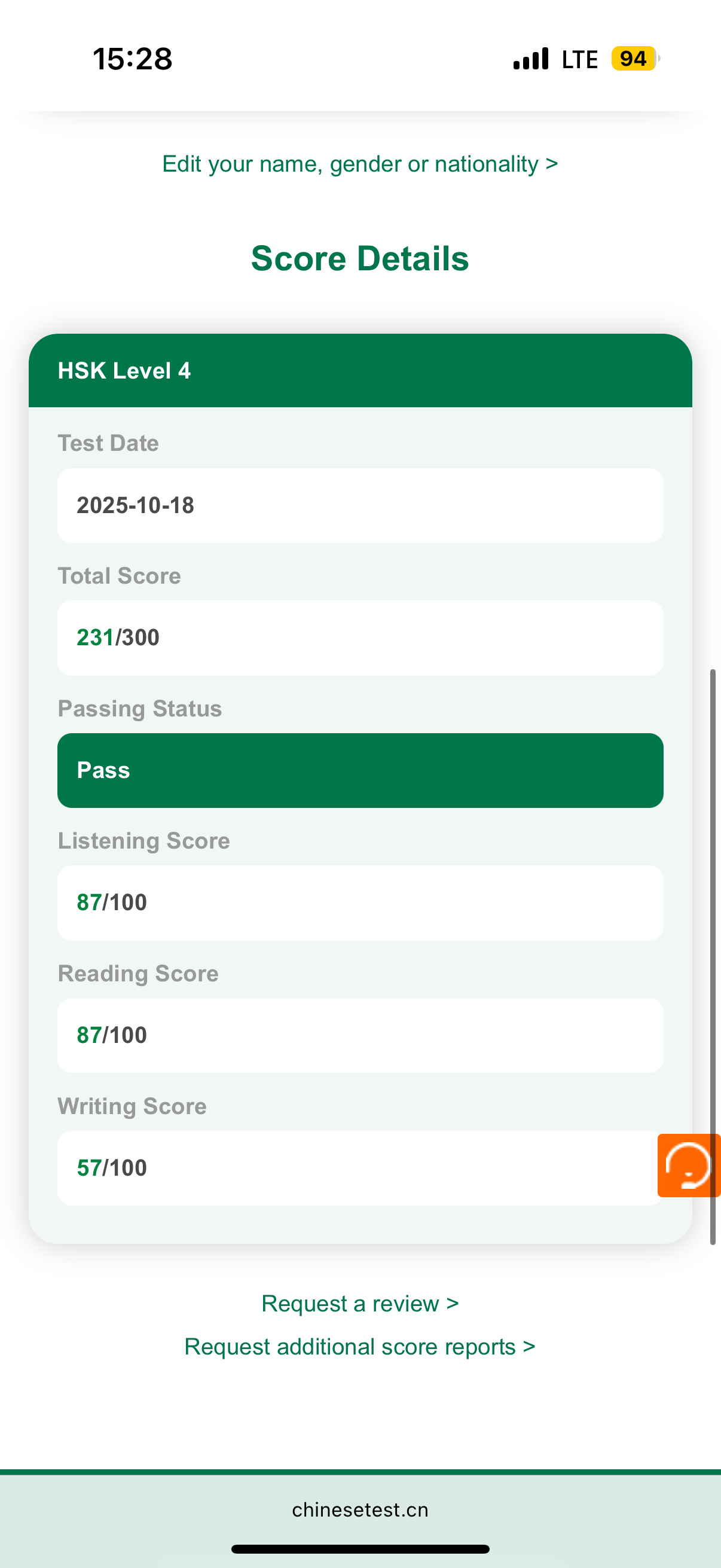 연주쌤이랑 한 달동안 빡세게 공부하고 합격했습니다. 오랜만에 보는 중국어 시험이라 좀 떨렸는데 선생님께서 항상 강조하신 내용이 시험에 거의 나오고 수업 시간에 시험 응시 노하우 틈틈이 알려주신 것도 실전에서 적용하여 결국 합격했습니다 감사합니다 선생님! |